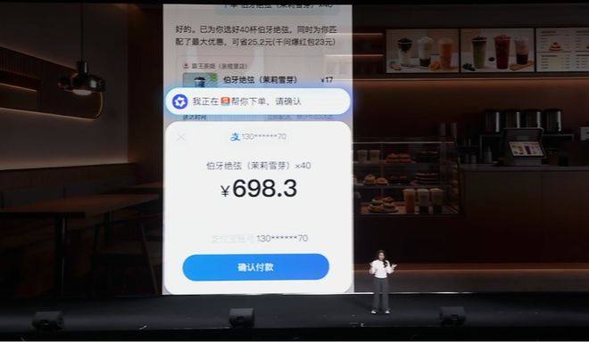 发布会现场,阿里副总裁吴嘉亲自演示,用AI点了一单奶茶。