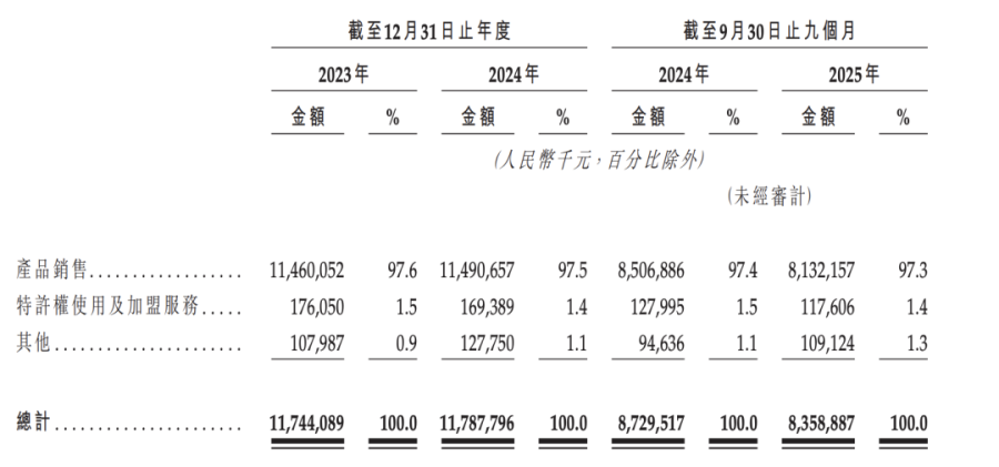 扩张速度放缓的同时,钱大妈也没有保持高增长的营收曲线。招股书显示,2023年、2024年的营收分别为117.4亿元和117.9亿元,几乎没有增长。2025年前三季度,钱大妈营收为83.6亿元,同比下降4.2%。