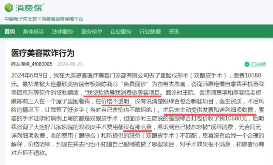 10680元双眼皮变“惊吓”!大连恩喜医美诱导贷款全程曝光