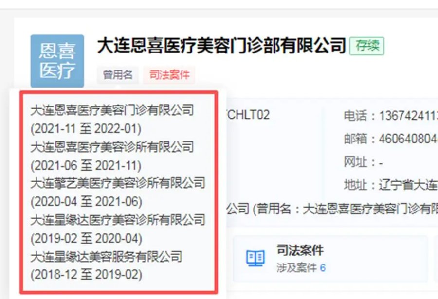 大连恩喜医美自2018年启程以来,仿佛在用不断更换的招牌掩盖什么。