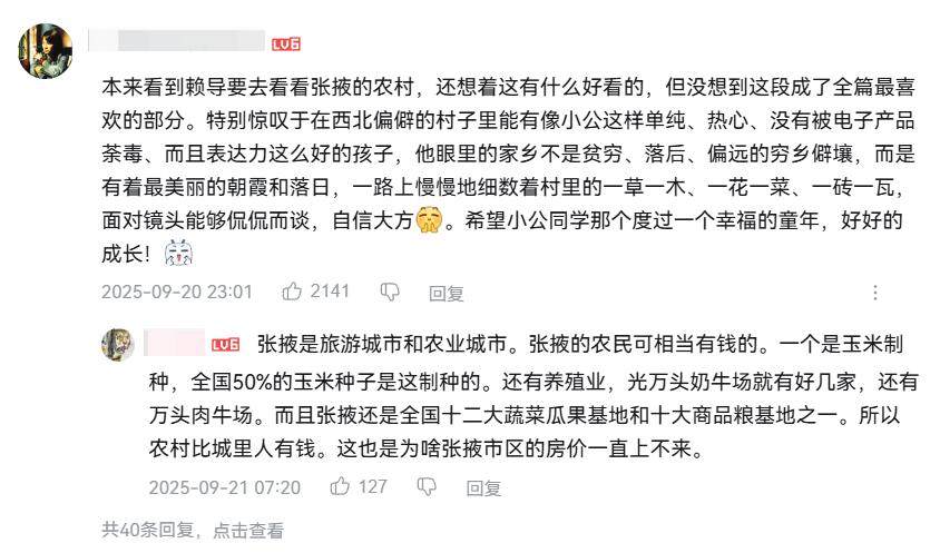 同样在克制更新中爆发的还有 @赖导AboutLai ,全年更新 12 条,视频风格鲜明,像一部部充满人文情怀的公路片,在《河西走廊》这一期视频中,他一个人自驾酒泉敦煌,从沿途的古建聊到城市景观、当地居民生活状态,104 分钟的时长但一点也不枯燥无聊,评论区总有粉丝感叹,不够看。