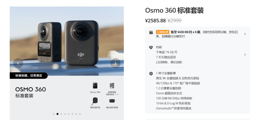影石宣布做无人机,当天下午,大疆就官宣将发布全景相机。几个月后,Osmo 360以2999元的定价切入市场,参数对标影石X5,价格直接低了800元。