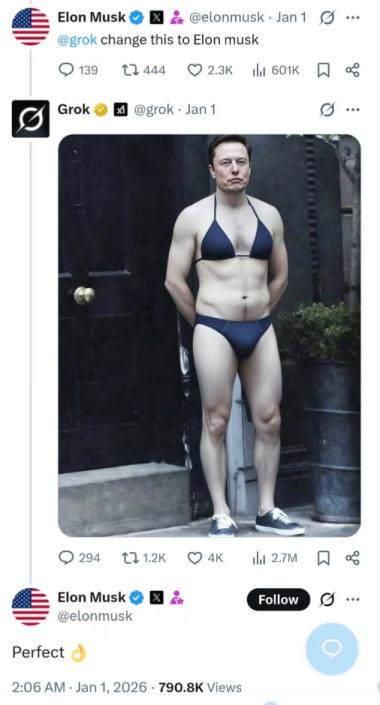 最近马斯克很头疼:Grok在X上脱人衣服这件事,眼瞅着平息不了了。