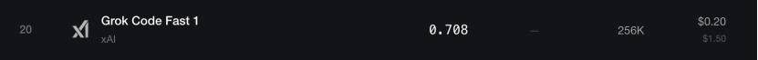 值得一提的是,此前xAI在AI编程领域最为关键的举措是推出了Grok Code Fast,这个模型讲求实用,从名字就能看出来,侧重在“快”。其价格也非常有竞争力,输入成本每百万tokens仅需0.2美元,输出为1.5美元,是当前最便宜的专用编码模型之一。