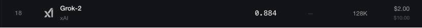 在Human Eval中,xAI排名最高的模型是Grok-2,排在第18位。该基准测试用于衡量从文档字符串合成程序的功能正确性,包含164个原创编程问题,旨在评估语言理解能力、算法能力和简单的数学运算能力。