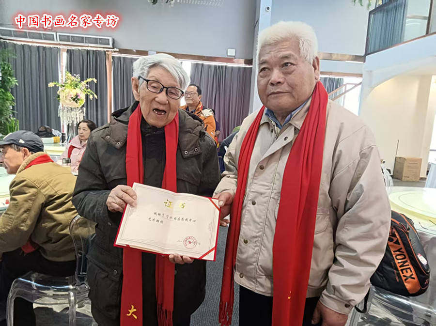滁州火花活动中心的陈春荣同志,早已备好为这份不期而遇的惊喜准备的礼物。他缓缓取出两幅珍藏已久的名人书法作品,一幅“百福”字字圆润,似将世间所有福气尽数裹挟;一幅“百寿”笔笔苍劲,承载着岁月沉淀的安康祈愿。