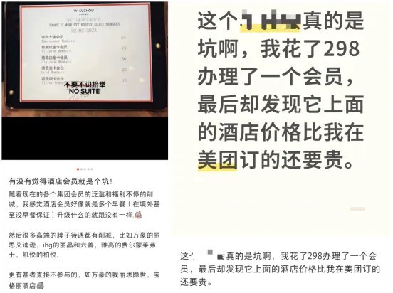 这个过程中,真金白银住出来的最有品牌忠诚度的高等级会员反而被连坐,跟着权益稀释贬值,引发了他们强烈的不满,进而动摇对品牌的信任度和忠诚度。