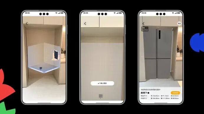 例如在购物时,京东鸿蒙版的 “高精度AR摆摆看” 应对的是网购大件家具的尺寸焦虑问题。用户只需用手机扫描客厅,就能将沙发、冰箱等商品1:1虚拟摆放到真实场景中,从各个角度查看搭配效果,该功能利用的就是华为的空间计算能力。目前,该功能虽然在其他手机系统上也有落地,但都是基于普通AR效果,精度远远不如鸿蒙系统版本。
