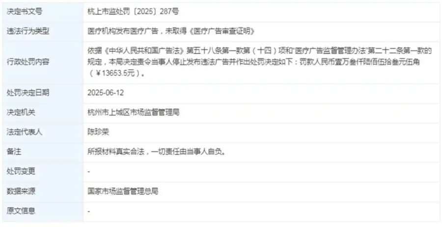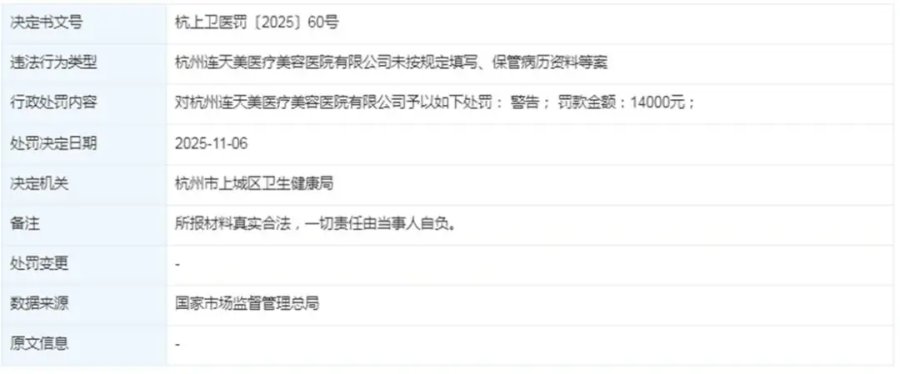 2025年6月,杭州连天美因违法发布医疗广告,被责令停止发布违法广告,并被处以罚款13653.5元。这一行为不仅违反了广告法的相关规定,更是对消费者的一种误导。虚假或夸大的医疗广告,往往会让消费者在选择医美项目时产生错误的判断,从而陷入不必要的风险之中。