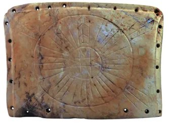 洛书被认为是1985年在安徽凌家滩距今5300年的遗址中发现的,它发现时的状态是玉质造型龟盖下面夹着的玉板,玉板上刻有复杂的图案,图案十分清晰。冯时认为,图案标注的是地理方位,四方八角,四个方位分割为四个空间,加上中心的空间,为五宫。八角指向八个方向,分割成八个空间,加上中心的空间,为九宫。从四方到八角,从五宫到九宫,这就是地理方位的整体,所谓“九五至尊”,也是由此引申而来。