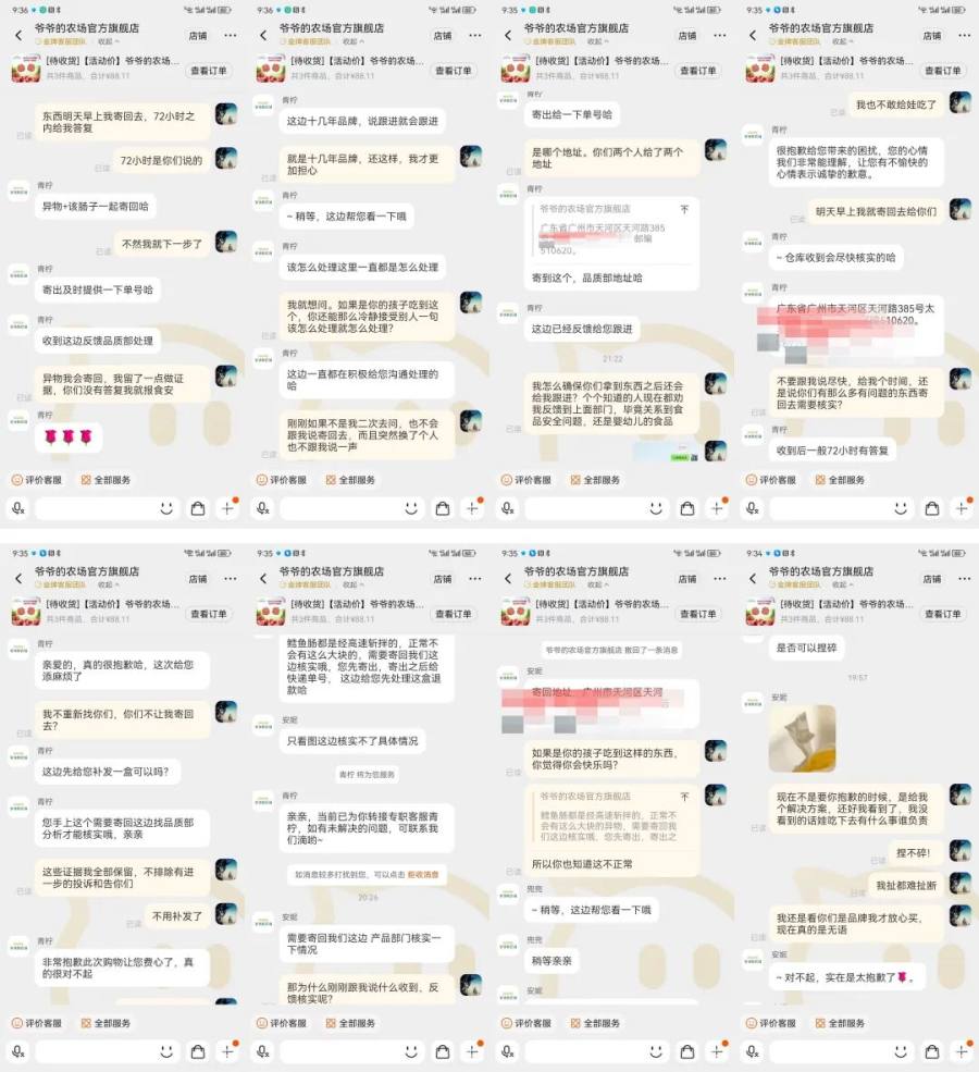 对于客诉,爷爷的农场服务人员除了抱歉,让消费者回寄,赔偿一袋相同的产品之外,并未找到为消费者解决问题和让消费者满意的方式。