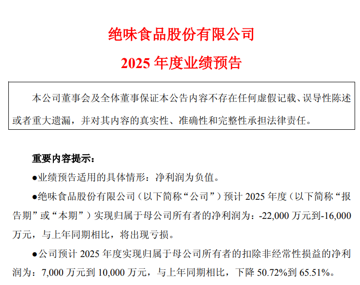 这是绝味食品自2017年上市以来,首次出现年度亏损。