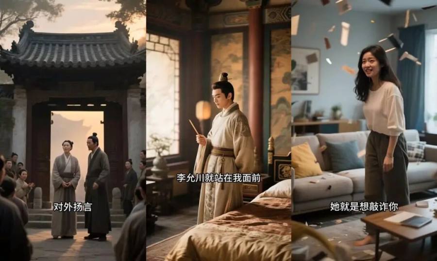 AI真人漫解剧的生产流程也极为简单,比起AI动态漫还有导演、编剧、分镜师、AI抽卡师、剪辑后期等多个岗位,解说剧仅需要两个人一组,甚至一人一组,一天就能生产一部,不需要剧本,直接用小说生成。