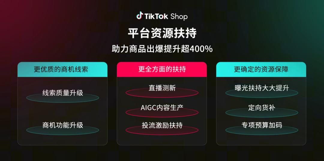 在这次交流会上,TikTok Shop也给全托管女装商家推出了一整套扶持政策。平台不仅会为商家提供更优质的商机线索,还带来了直播测新、AIGC内容制作、投流激励等多维度支持,同时还有定向货补、专项预算加码等实打实的资源保障,助力商品爆款率提升超400%。