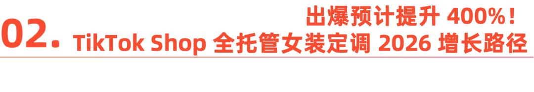 从这个角度来看,TikTok Shop全托管模式不仅赋能商家实现爆款“一站卖全球”;又深入布局了本地托管与海外仓业务,无疑是服饰卖家出海的优质选择。随着新市场的持续拓展和本地布局的不断深化,依托TikTok Shop强大的内容创作能力及全方位的商家赋能,2026年,TikTok Shop全托管女装有望迎来新的增长高峰。