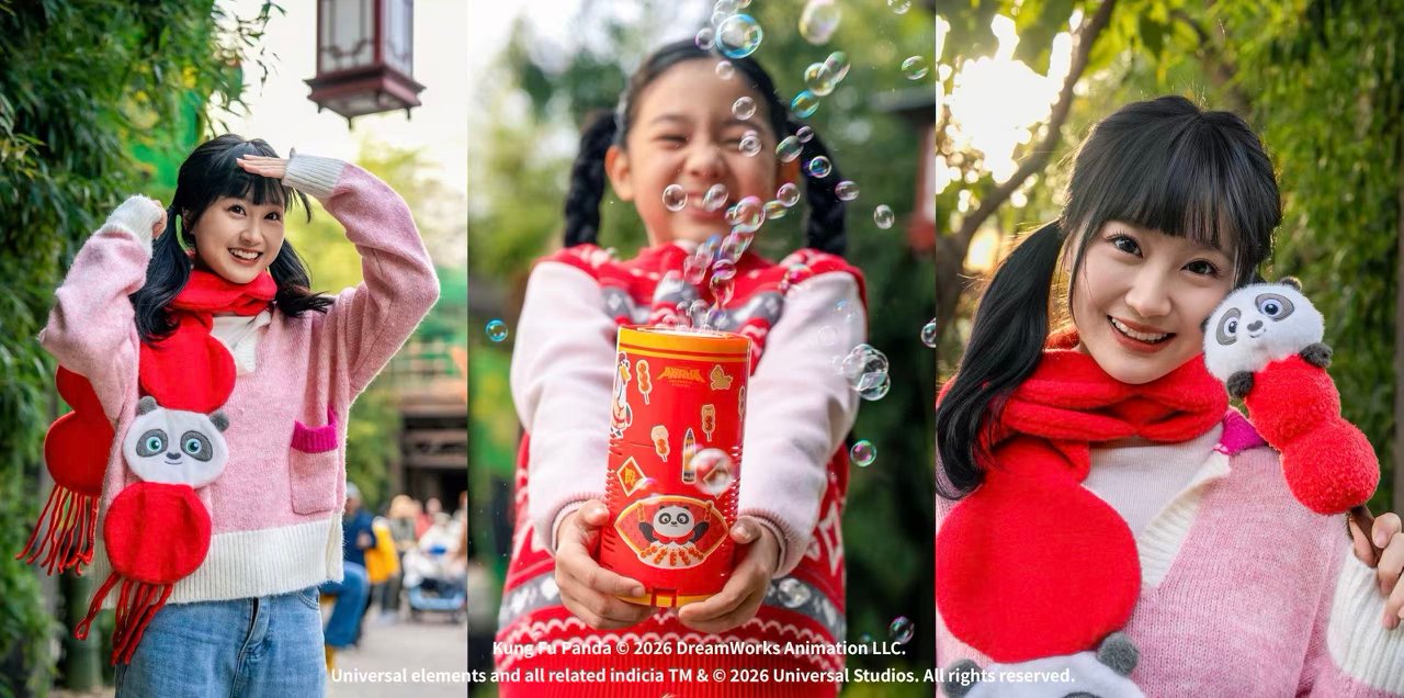 春节不仅是“看与吃的节日”,更是一个“带回新年好运”的重要时刻。功夫熊猫主题商品充满浓浓中国韵味,从趣味十足的马头帽子,造型可爱的爆竹泡泡机,到温暖实用的功夫熊猫围巾、萌趣的山楂造型毛绒玩具,游客可以把它们融入游园的穿搭之中,当作最“靓”眼的节日穿搭和拍照道具,也可以作为伴手礼送出,让它们成为承载挂念、传递祝福的限定新年好礼。