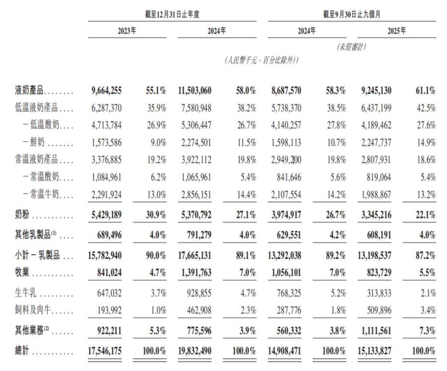 悦鲜活品牌,2024年收入18.8亿元,同比增长38%,2025年前三个季度增速同样达到了37.6%。在悦鲜活的带动下,2024年和2025年前三个季度,鲜奶的增速分别为44.5%和40.6%。
