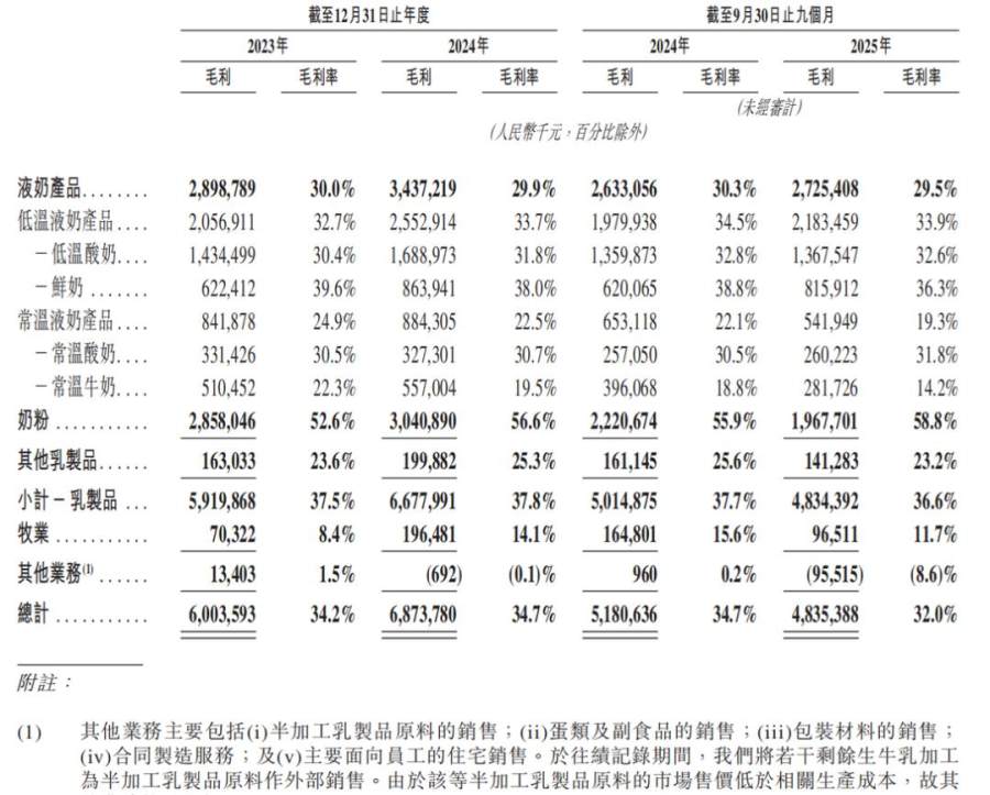 不出意外,君乐宝鲜奶的毛利率出现了下滑,从2023年的39.6%降至2025年前三个季度的36.3%。