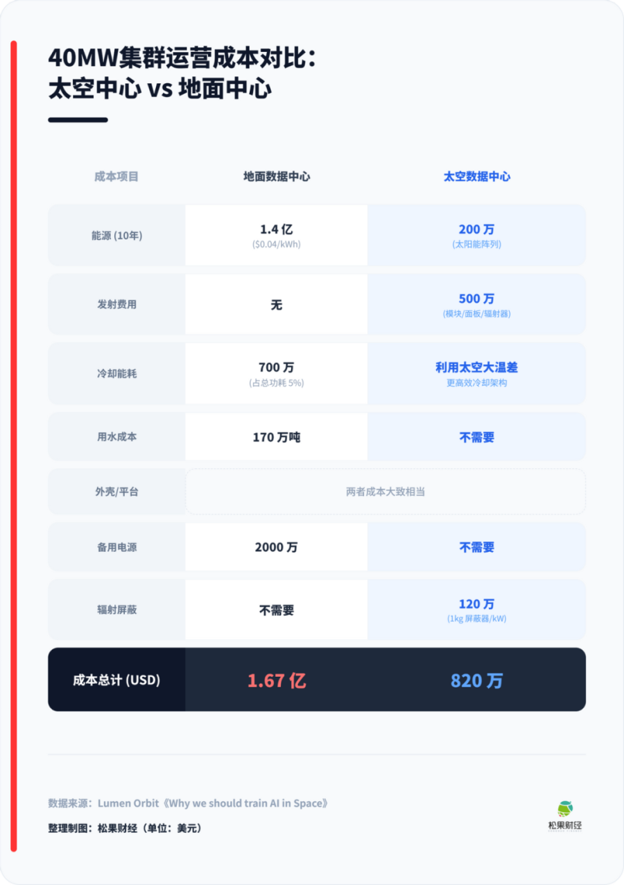 但太空算力避开了把电送下来这一步。卫星、空间站、本就需要电力;如果把一部分AI训练、推理搬到轨道侧,只需要把算过的结果往地面传,带宽和能耗都小得多,光伏系统只要同时养活算力舱和通信链路即可。
