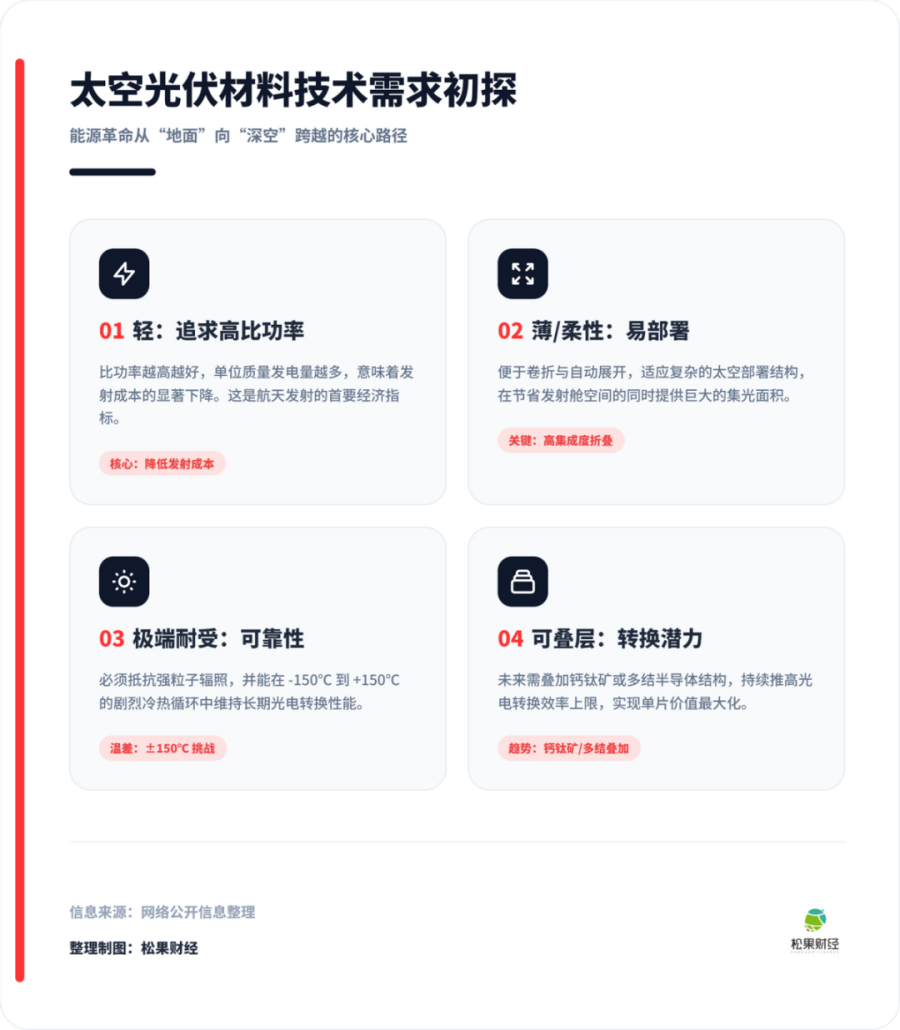 太空光伏如果落地,那么比拼的一定是在单位质量、单位面积内,谁能提供最稳定、最轻、最抗辐照的电力。