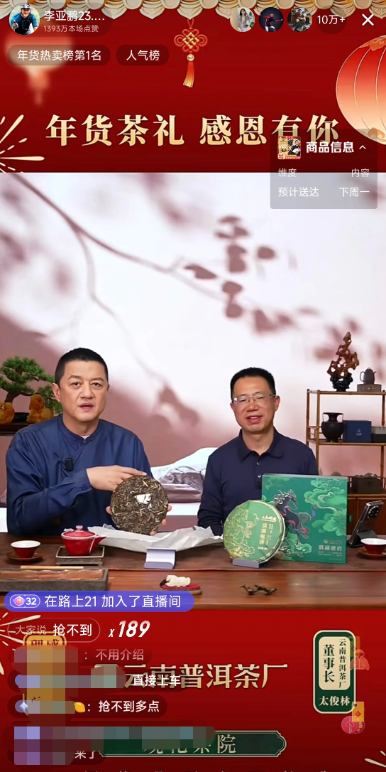 李亚鹏 1 月 23 日这场 “年货茶礼感恩有你” 云南普洱茶厂专场直播,彻底刷新了外界对其带货能力的认知。