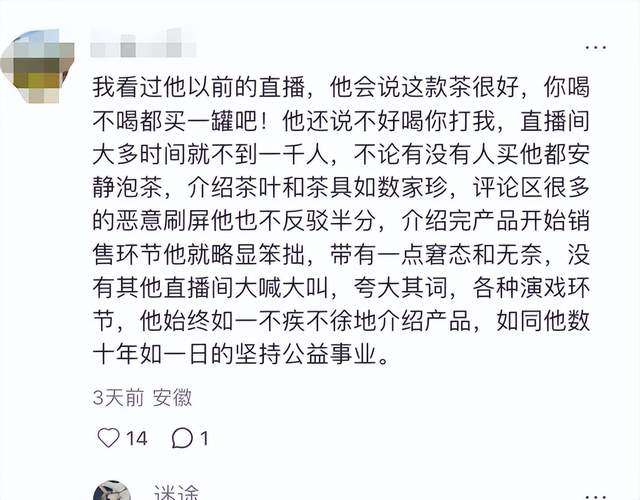 网友的评论也从过去的质疑转向支持:“早几个月看他直播间只有 1000 多人,现在卖的瓷器茶具确实不错”“被逼到无路可退才发声,这份担当让人愿意支持”。