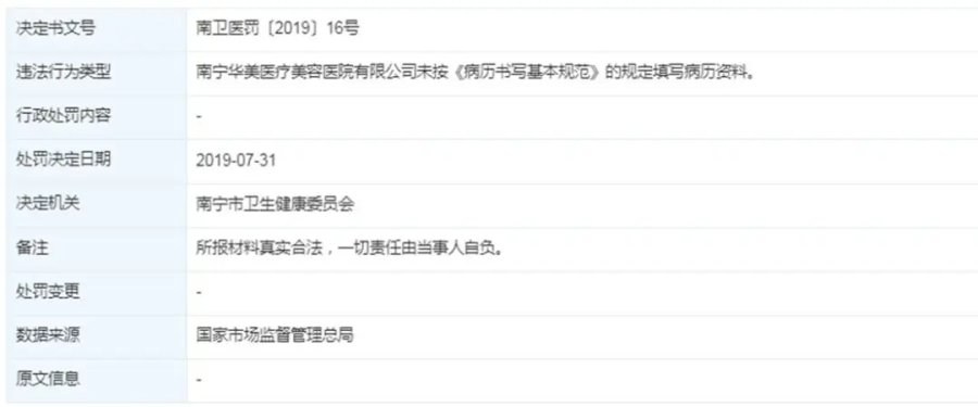 早在2017年5月,南京华美医美就因违规发布医疗广告的行为,被相关部门予以处罚,这无疑是给它敲响了第一声警钟。
