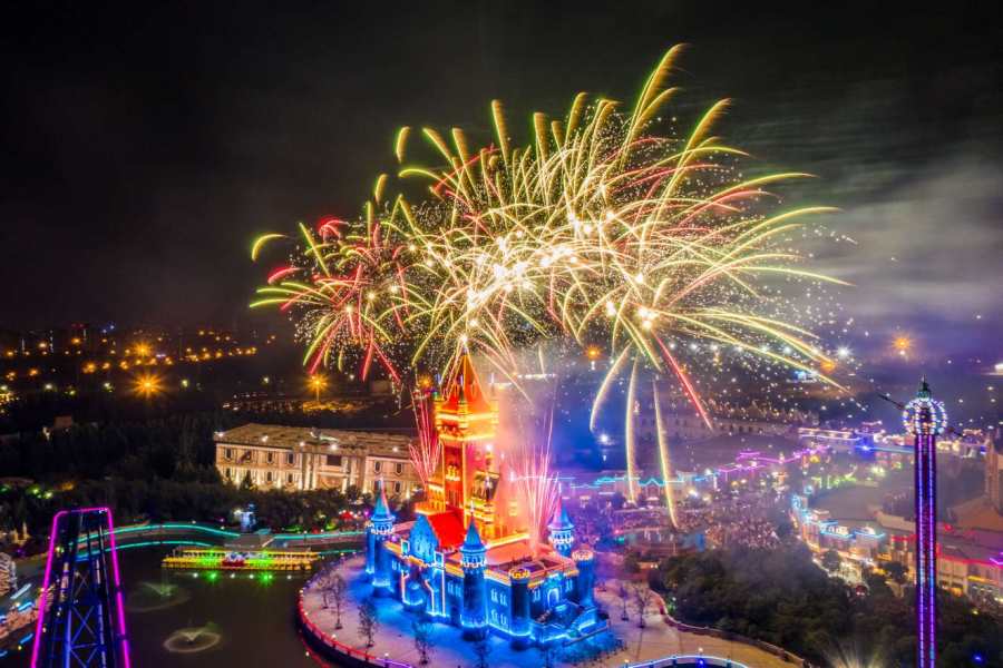 本次新春活动的一大亮点是乐园精心筹备的烟花大秀。在郑州方特欢乐世界,“盛世华章”超级城堡烟花秀将以其标志性的城堡作为背景,配合绚丽多彩的焰火,共同描绘出一幅璀璨夺目的新春画卷;而在郑州方特梦幻王国,“熊梦星河”烟花秀则通过高科技游乐设施与焰火的完美结合,营造出沉浸式的光影体验,为游客带来别样的新春记忆。
