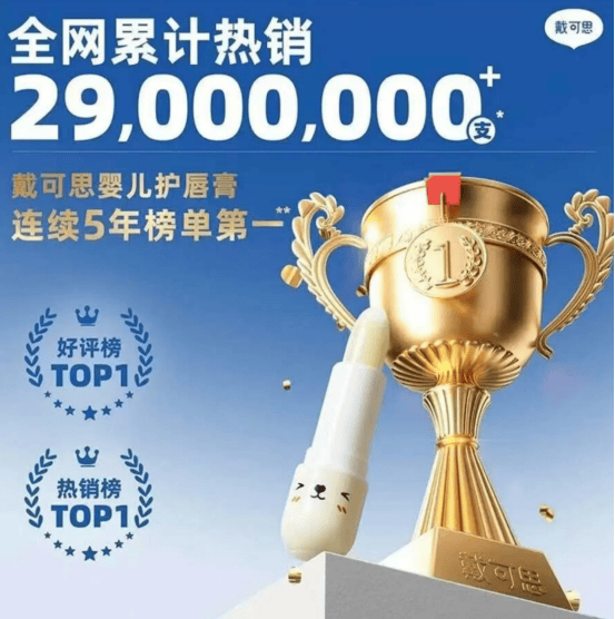 而此次涉事的产品为戴可思婴儿护唇膏,是品牌的明星单品,其在天猫旗舰店累计销量超30万件,全网热销量更是突破2900万件,按照戴可思的宣传,该护唇膏连续5年居于榜单第一,还曾邀请刘涛等明星代言。