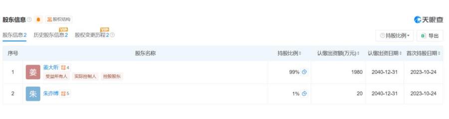 从公司治理层面看,近两年阶跃星辰的核心管理层相对稳定。“天眼查”显示,目前阶跃星辰的股东仍为姜大昕和朱亦博,其中姜大昕持股99%,对阶跃星辰拥有绝对的控制权。