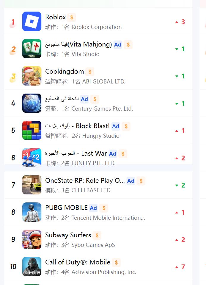 沙特实时游戏榜中中国厂商出品游戏占比超三分之一