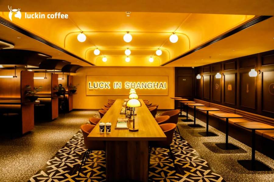 2025年,瑞幸深度参与外卖大战,这样的印象被进一步强化,Q3财报亦显示杯量结构继续向外卖迁移。这也是瑞幸上海洋房花园主题店引爆社交媒体的原因:门店并没有特殊菜单,同为九块九消费点,却实现了从“提了就走”到“在陆家嘴咖啡店拍照打卡自习待一天”的巨大反差。这家位于上海览海国际广场的二层门店原本是一家星巴克,瑞幸接手后进行了重新装修,除了适合拍照打卡的老上海风格布景,还设置了开放式会议室桌和自习室。