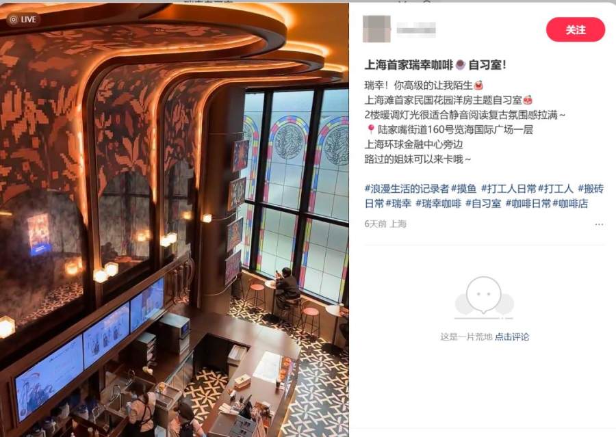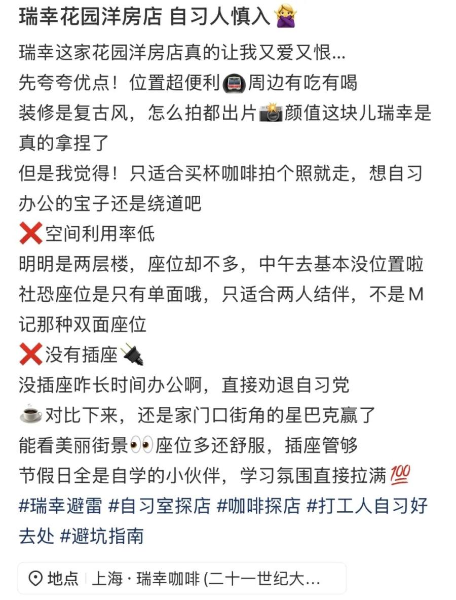 “九块九能在民国公馆喝咖啡?瑞幸现在高级得让我感到陌生。”