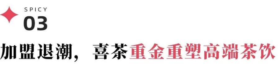 25年2月,喜茶宣布暂缓接受加盟申请,加盟店的最高数量停留在24年底的四千五百家左右。相关人士向剁椒透露,对于不够符合调性的现存加盟街店,品牌会与加盟商协商进行搬迁或装修。而现存的一千余家直营门店,将成为喜茶“茶饮空间”探索的核心窗口。
