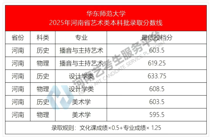 985高校华东师范大学2025年河南省艺术类本科批录取分数线