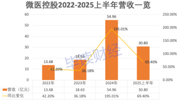 收益于市场地位,公司营收一路攀升。2022-2015年上半年,微医控股营收分别为13.68亿元、18.63亿元、54.96亿元和30.8亿元,增速分别为42.2%、36.18%、195.01%和69.4%。