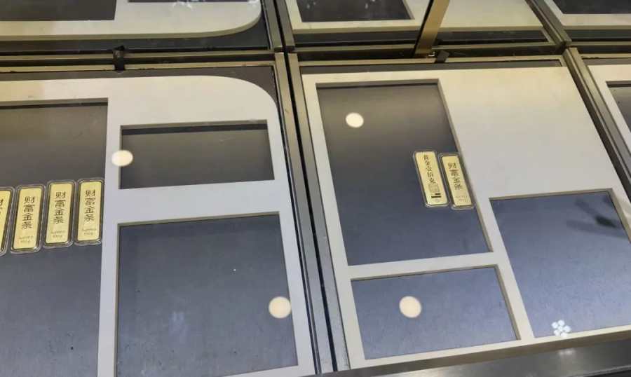 伴随金价回落,不少人正在买入实物金条、趁机抄底。蓝鲸记者了解到,商场内各家售卖投资金条的价格差异较大,从克价1045-1145元不等,相比大盘溢价数十到上百元。