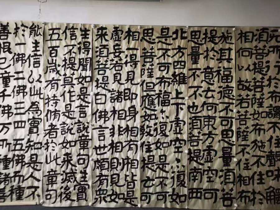 在实操体验环节,队员们分组围坐石案,尝试拓印经典的“如是我闻”单字碑刻。看似简单的上纸与捶拓,实则暗藏诸多玄机:宣纸的湿润度决定墨色的渗透效果,拓包的力度把控影响文字的立体层次,稍有偏差便会让拓片失了神韵。起初,不少队员因手法生疏、节奏不当,拓出的经文要么墨色不均,要么边缘模糊,甚至不慎蹭破宣纸;在传承人的悉心指导下,大家反复揣摩“轻捶慢拓、先轻后重”的技巧,当一张张墨色浓淡相宜、字迹清晰如刻的拓片完成时,队员们难掩激动。有队员感慨:“一把錾子、一方青石,看似粗犷,却藏着华夏文明的密码与匠心。原来石上生花的背后,是代代匠人对技艺的敬畏与传承。”