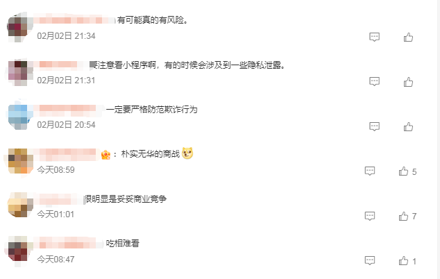 事件曝光后,网友对此呈现出两种截然不同的观点。部分网友认为,微信的风险提示基于大量用户投诉,小程序可能确实存在隐私泄露或欺诈隐患,提醒其他用户需严格甄别信息真伪,加强防范意识。