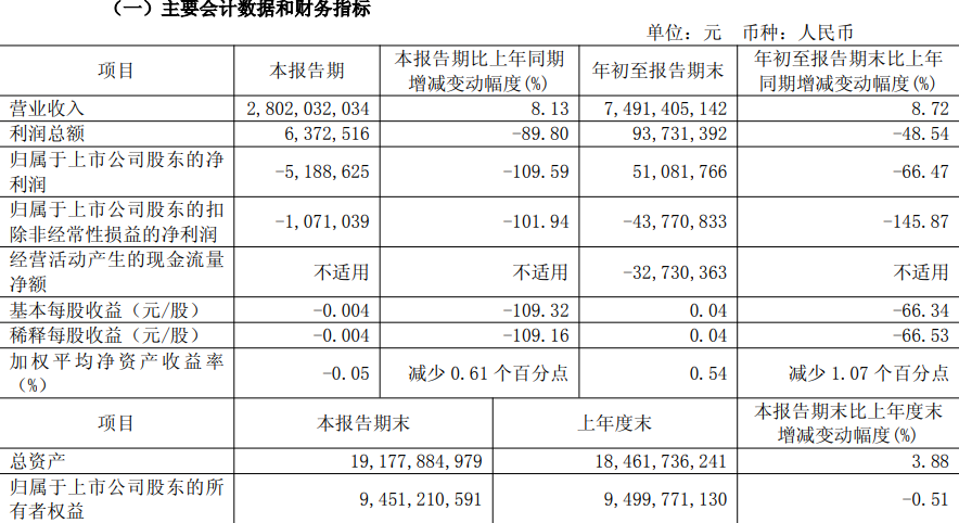 2025年前三季度,公司实现营收74.91亿元,同比增长8.72%,但归母净利润仅5000余万元,同比暴跌66.47%,扣非后更是直接亏损。