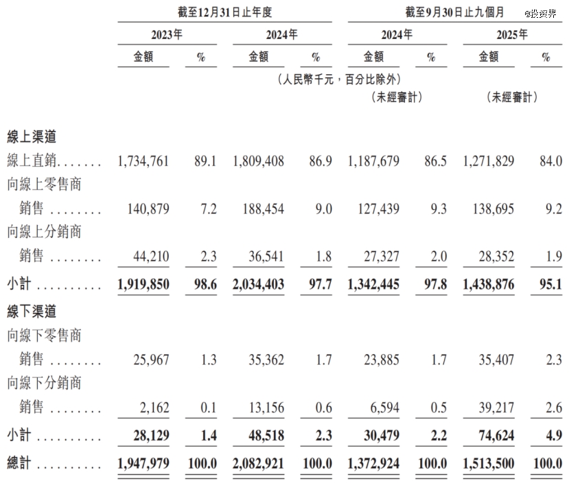 此外,公司的销售渠道高度集中于线上。2023年、2024年及2025年前三季度,护家科技线上营收占比分别高达98.6%、97.7%、95.1%,线下营收规模不到1亿元。