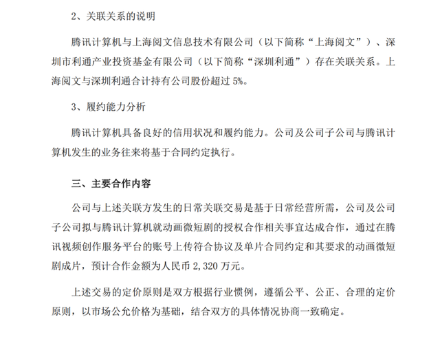 今天下午,中文在线发布公告,宣布他们与腾讯就动画微短剧的授权事宜达成合作。双方将通过在腾讯视频发布大量动画微短剧成片,预计合作金额为人民币2320万元。