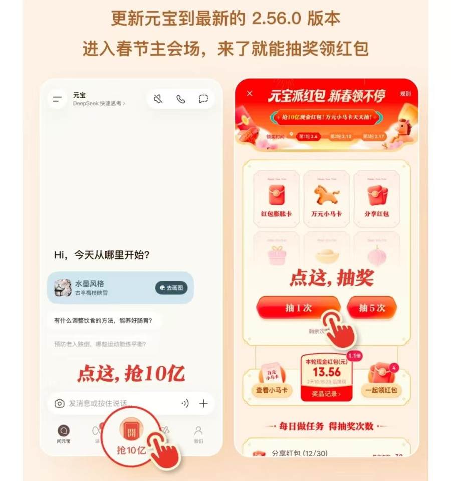 马化腾的元宝10亿红包背后,是买用户习惯,还是为新路径豪赌?