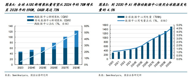 与此同时,AIDC对算力的需求将显著推高电力消耗,预计全球数据中心用电量将从2023年的430TWh(占全球总量1.4%)增至2030年的1510TWh(占全球总量4.5%)。