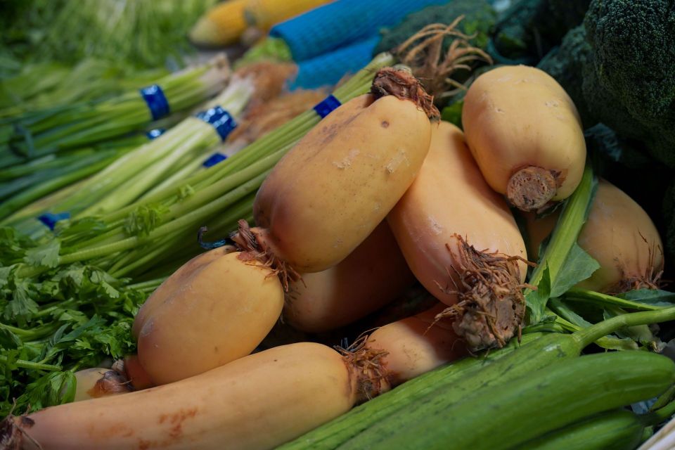 推着三轮车的菜农,裹着靛蓝布襟棉袄,棉帽耳罩捂得严实,鬓角沾着夜雾的潮气,指尖冻得微红,却依旧稳稳扶着车把,穿行在薄雾弥漫的街巷。车斗里码着刚从菜园拔起的青菜、白菜、青蒜苗,菜叶上悬着未干的霜露,叶片挺括,翠色欲滴,指尖轻触,凉丝丝的水汽沁入肌理,是腊月独有的清冽与鲜活,是巴山土地最质朴的馈赠。而车斗最惹眼处,总扎着一捆捆捆扎齐整的干四季豆,码着一篮篮竹编盛托的干洋芋夹,摞着一束束麻线捆系的干萝卜丝——这是通江人腊月里最金贵的乡土珍味,是藏了一整个夏秋的岁月馈礼,是县城文学最具象的乡愁符号,是祖辈传下的生存智慧与生活仪式。