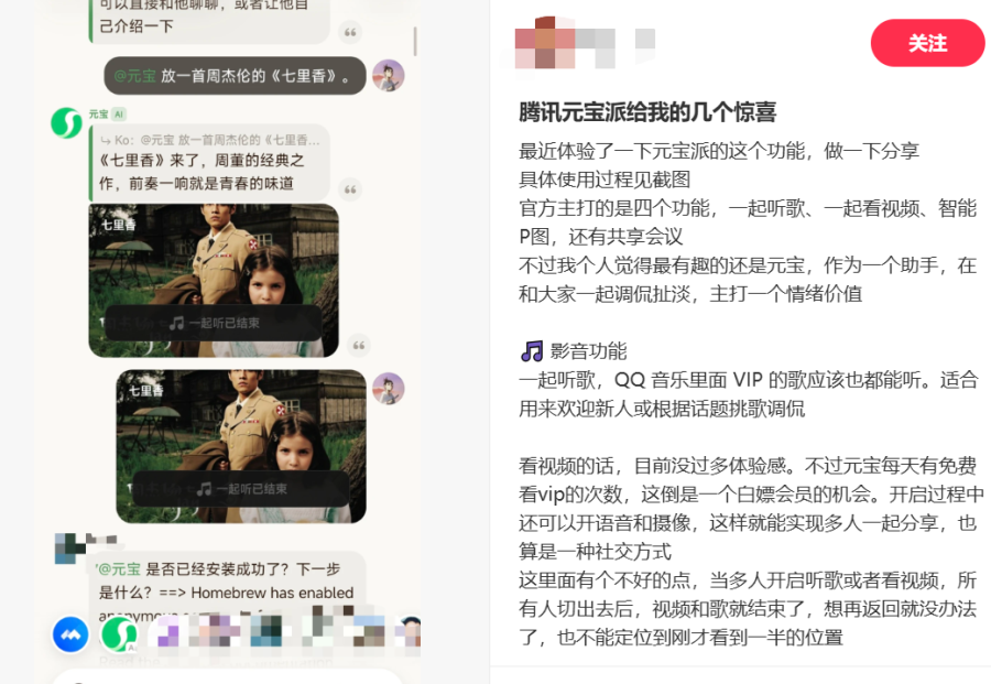 从用户的体验反馈来看,元宝派里的元宝很像微博的“评论罗伯特”,人味儿很重,能随时解答群成员的各种问题,还能迅速抓取聊天记录,提炼出关键信息和不同观点。总体来看,元宝派很像综合了所有腾讯系产品功能的群聊空间。