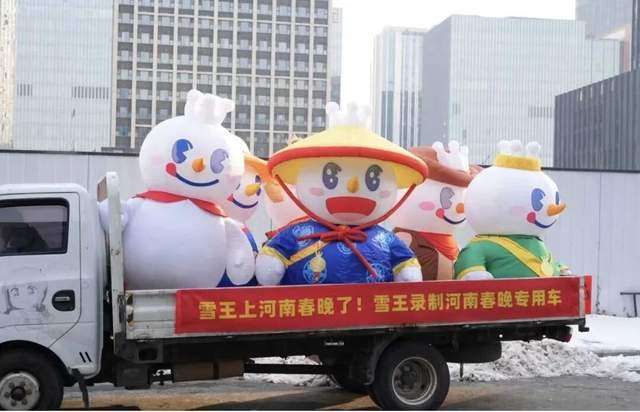 近日,有网友在街头偶遇拉了一整车“雪王”的车辆,挂着大红横幅,写着“雪王上2026河南春晚了”。许多个“雪王”在车里蹦蹦跳跳,场面十分欢乐。