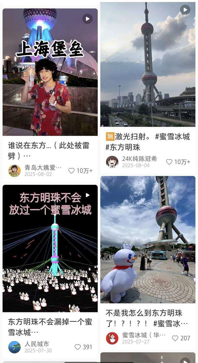 “在上海东方明珠前面喝蜜雪冰城,东方明珠会变成激光塔袭击你”,这原本是网友拿来开上海玩笑的地域梗,但最后的最大受益者却是蜜雪冰城。