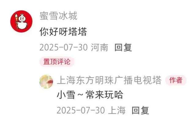 蜜雪冰城官方给了这个“梗”充分的自由生长空间,甚至在热度达到高点前,雪王亲自到东方明珠面前打卡,与东方明珠官方进行了各种互动 ,更是引爆了舆论场。