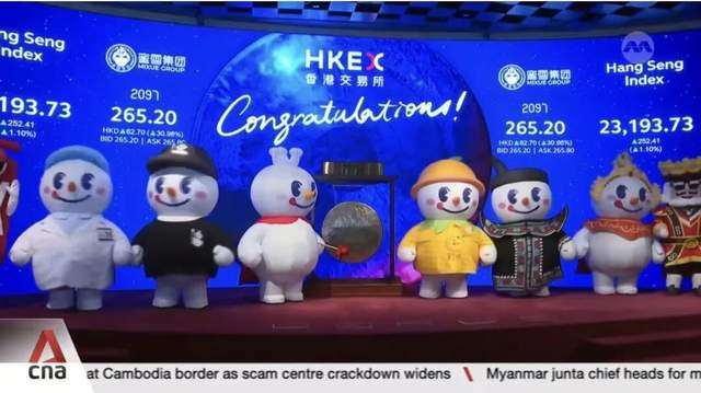 典型例如蜜雪冰城,去年3月品牌在港交所上市敲钟时,也保持了一如既往的“抽象”。别人都是老板高层纷纷到场、西装革履地出席敲钟仪式,只有蜜雪冰城派上了八个雪王,还给这八个雪王穿上了不同的衣服、打扮成不同模样、按照不同分工出席敲钟。可谓把娱乐精神贯彻到底了。